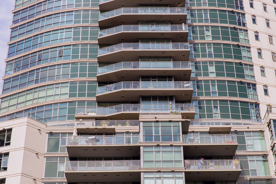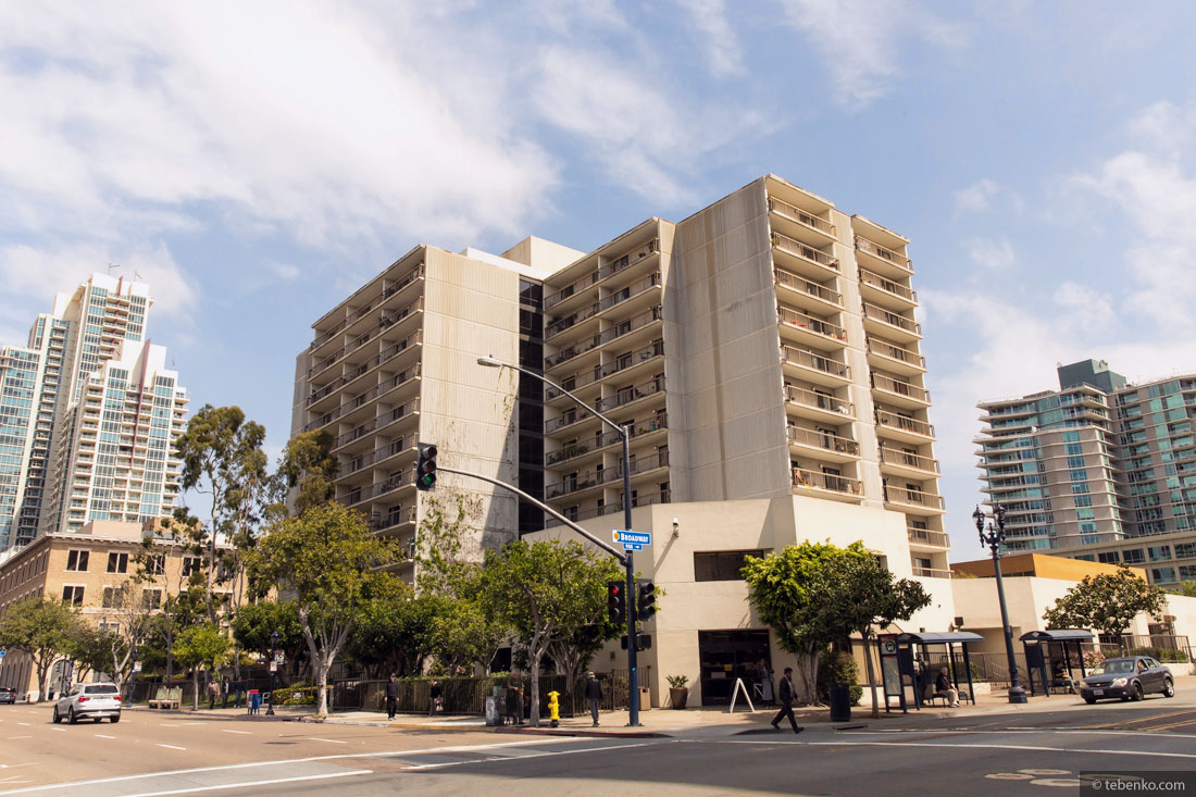 9Даунтаун Сан-Дієго не тисне хмарочосами, через близькість аеропорту, у місті заборонено будувати будинки вище 150 метрів. Тому забудова плавна, місцями багатоповерхова, але зовсім не гнітить.
